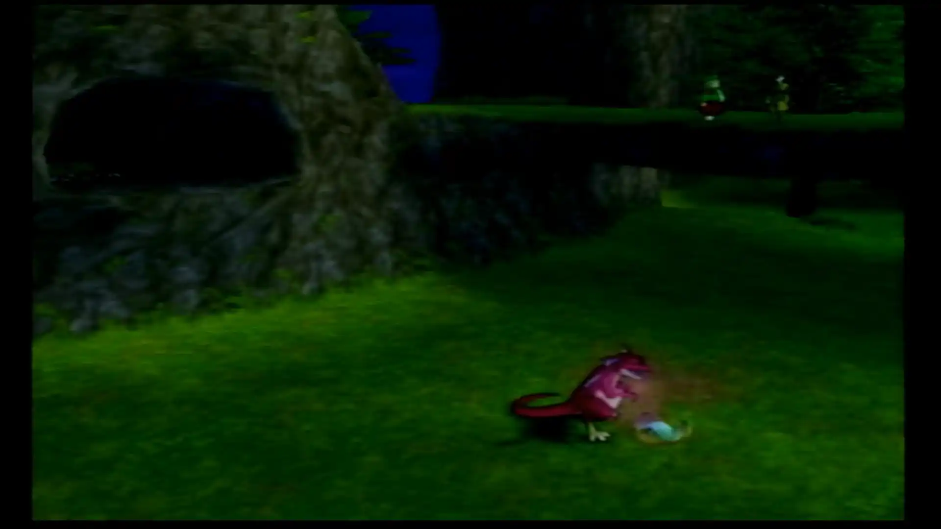 夕方になったみたい。ここで3体目のアルゴリザードを発見。巣穴で寝ているので、ジョロの実を使っておびき出す。