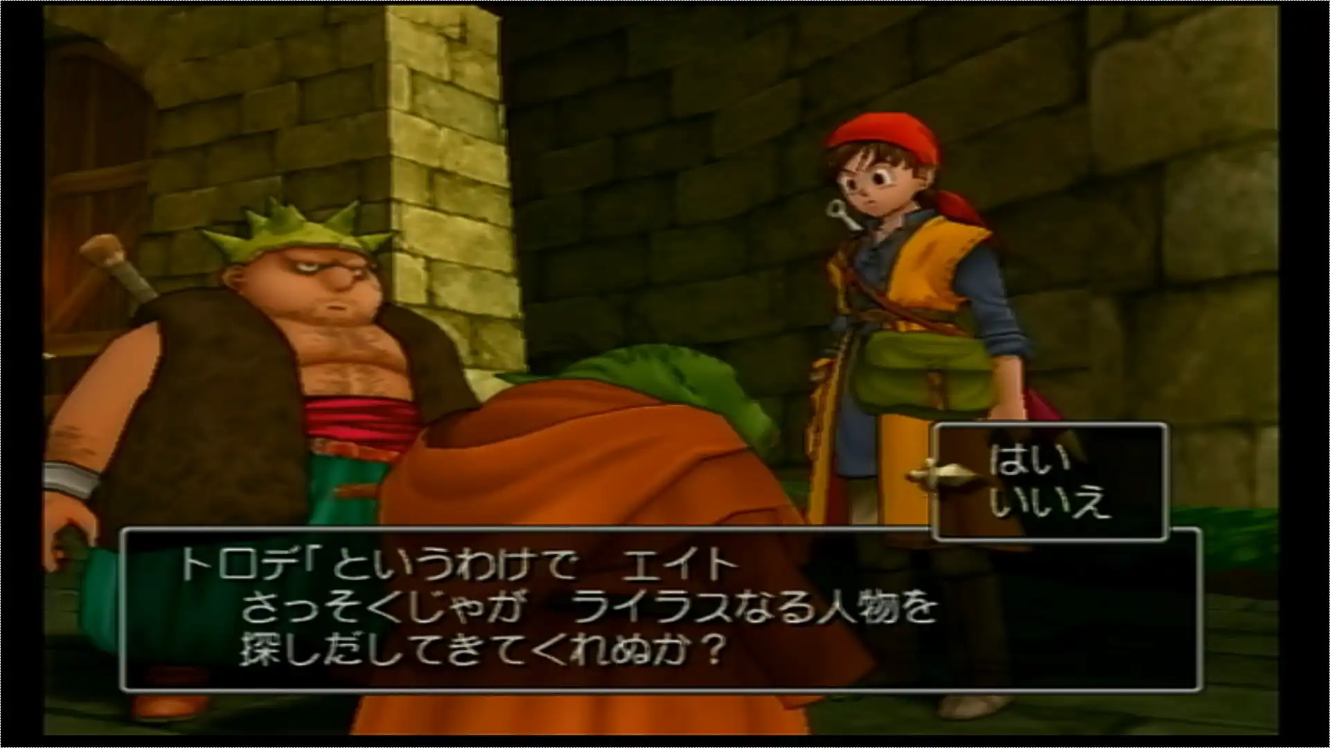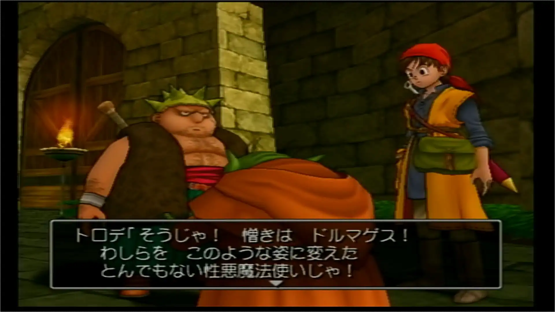 ドルマゲスという魔法使いに姿を変えられてしまったトロデと姫のミーティアの従者として主人公、そして弟分のヤンガスが登場。