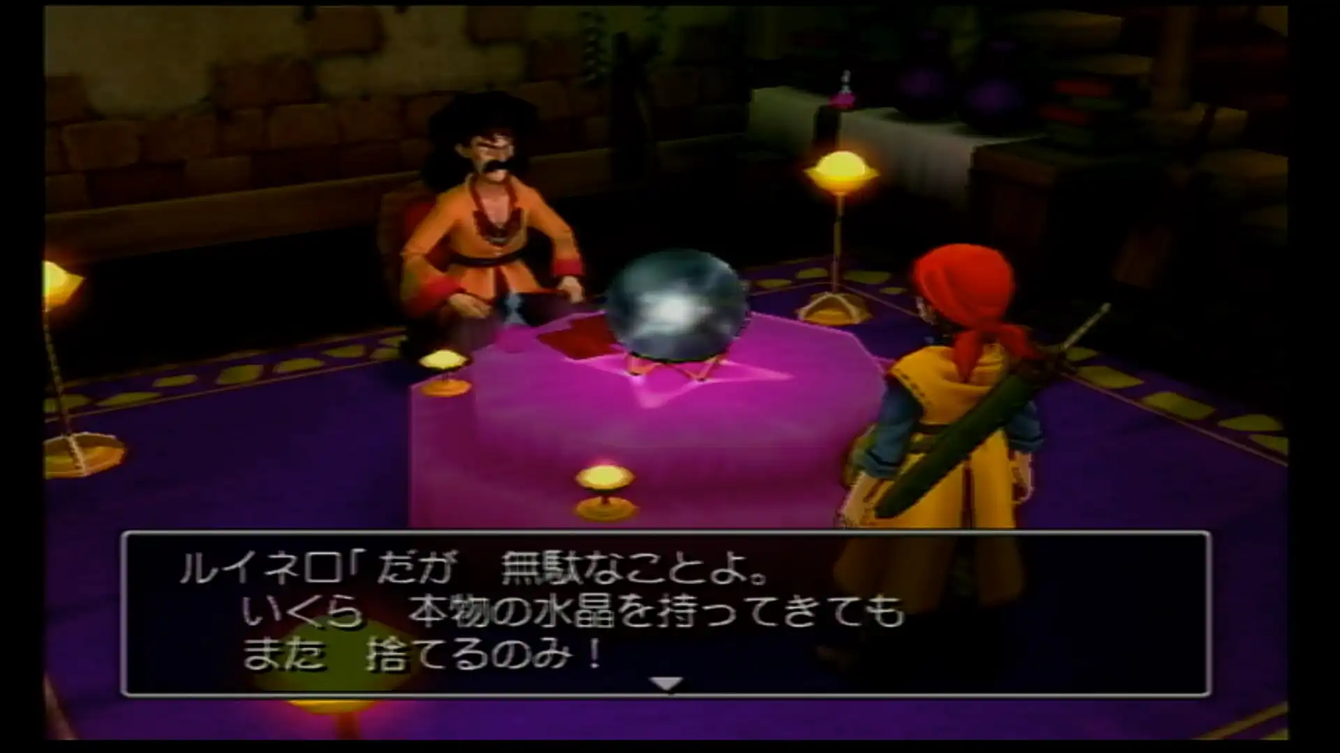 水晶玉をもって帰ってきた主人公。しかしルイネロに突っぱねられてしまう。