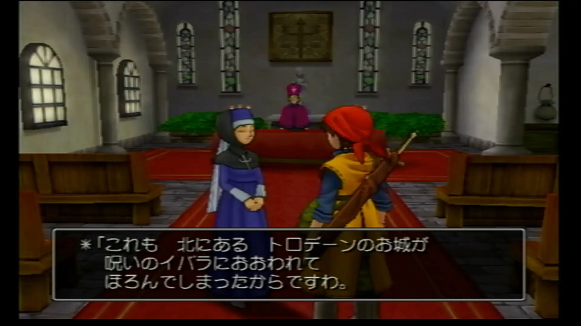 途中にあった教会で情報収集。城は呪われ、イバラに覆われてしまっているらしい。