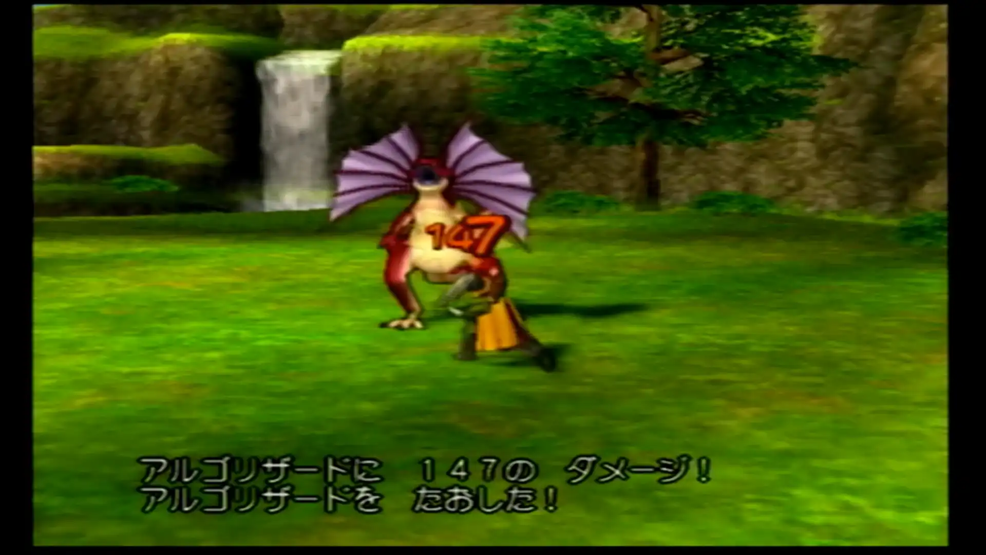 夕方になったみたい。ここで3体目のアルゴリザードを発見。巣穴で寝ているので、ジョロの実を使っておびき出す。