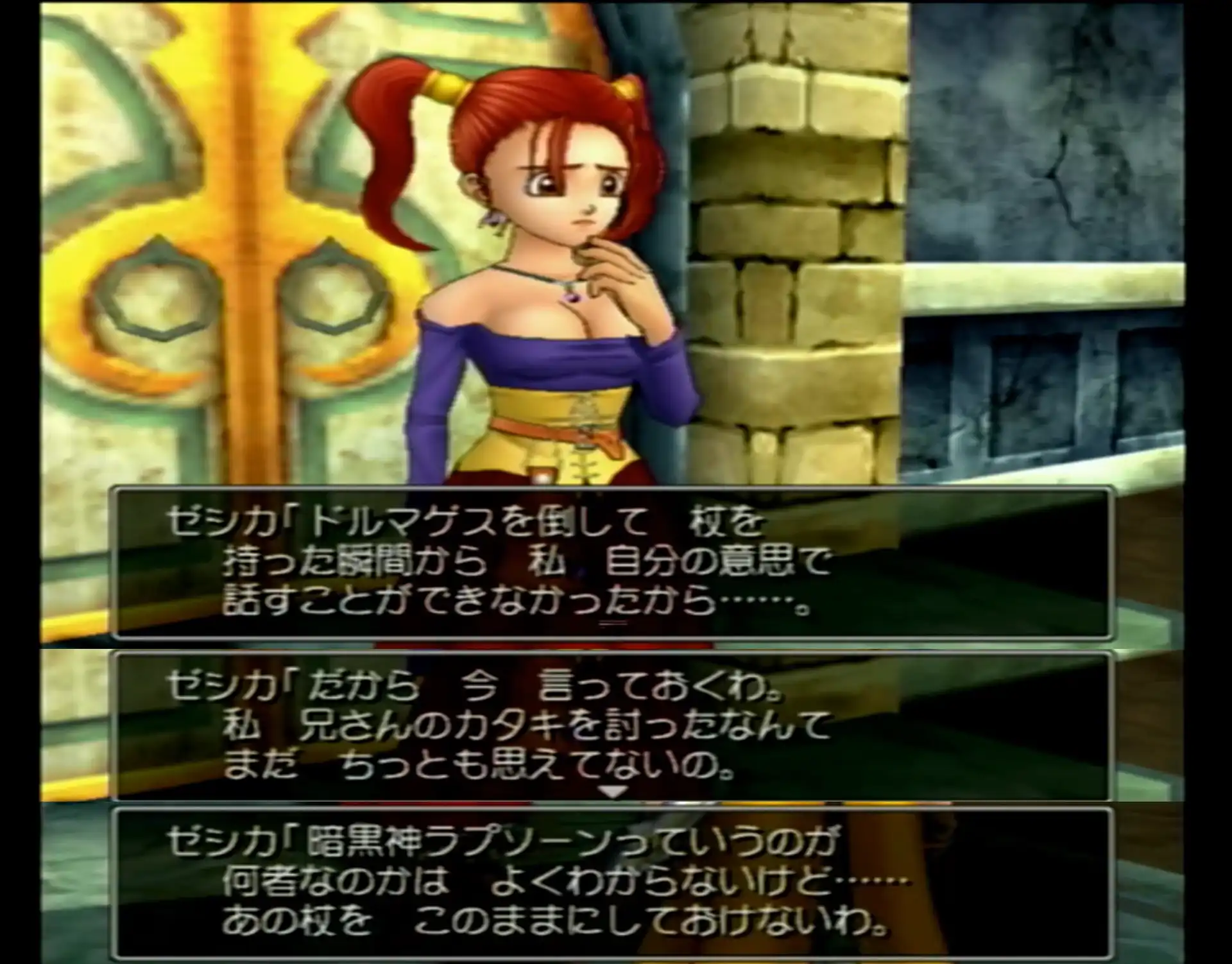 結界の効果で呪いが解けたゼシカ。杖によって操られていた時のことを語り始めます。